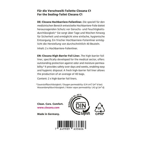 BIOBeutel/Folien Clesana Toilette, 1xFolie=36Toi.gänge, opt.Art. 66402