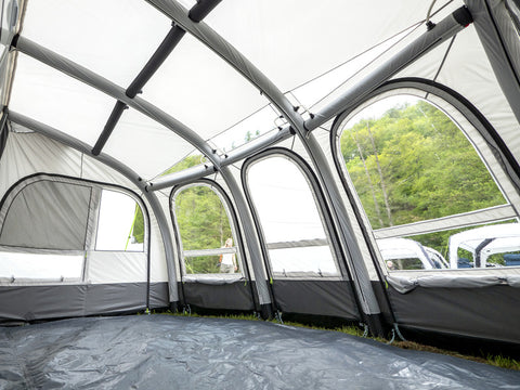 Zelthaut, Single-Point Inflation - Luftgestänge (TPU), 3 Dachverstärkungsluftschläuche (TPU), Windschürze, Abspannleinen, eringe, Luftpumpe, Packtasche, Schaumstoffpolster und Andruckstangen