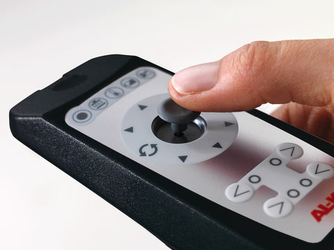 Völlig ohne Kraftaufwand und nur mit einer Hand rangieren Sie mit dem Funkhandsender das Fahrzeug an die gewünschte Postion. Feinfühlig und ruckelfrei reagiert der Joystick auf den Befehl des Bedieners. Dort wo der Daumen hinzeigt, bewegt sich auch der Wohnwagen. Der Joystick folgt willig allen Bewegungen Ihres Daumens in alle Richtungen und in jeder von Ihnen gewünschten Geschwindigkellig stufenlos und in einer Sensibilität, die Sie begeistern wird.