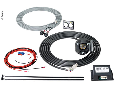 • easydriver flashlight, Elektronikbox mit 2 Schaltern, Kabelbaum, 13-polige Steckdose, Befestigungsmaterial und Bedienungsanleitung
