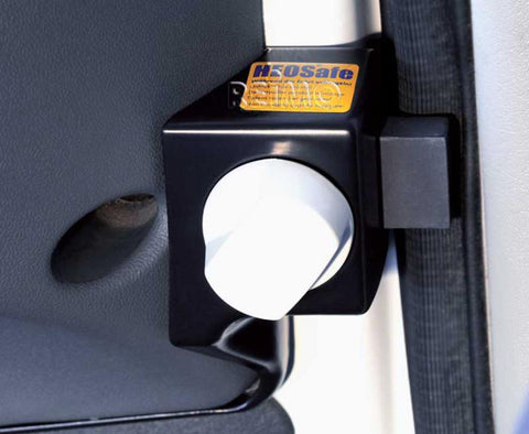 Passt perfekt unter den Türgriff des Fiat Ducato (innen), keine neuen Bohrungen nötig. Den Drehknauf drücken und nach rechts drehen, schon schiebt sich der Riegel hinter die B-Säule. Mit dem gleichen Dreh lässt sich der HEOSafe entriegeln. Satz für Fahrer- und Beifahrertür.