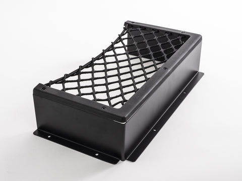 Ablagefach Komplettset mit stabilem Aluminiumrahmen und elastischem Netzgewebe, vormontiert und "plug and play" mit Montagematerial. Es schafft im Fahrzeug zusätzlichen Stauraum für Utensilien. Bohrungsdurchmesser 4,5 mm.