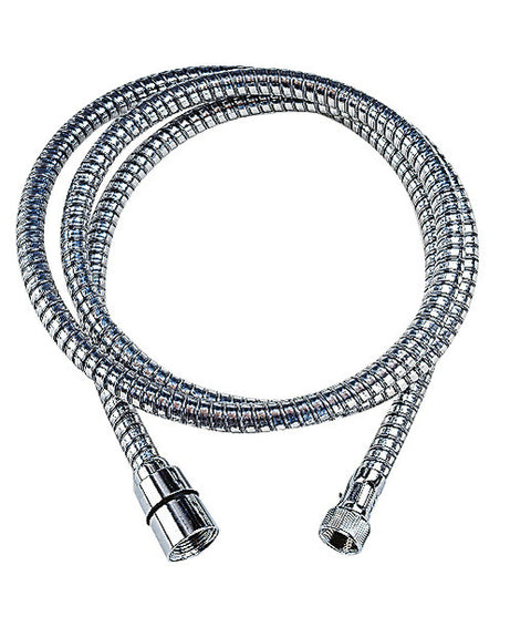 Brauseauslauf mit 1,5 m Metallschlauch. Kann auch in eine Wandhalterung mit Konus eingesteckt werden. Brausekopf ist leicht von Kalk zu reinigen und umstellbar von Strahl auf Duschen. 1/2" Gewindeanschluss, 45° Tischrosette mit Montage-Ø 27 mm. Chrom