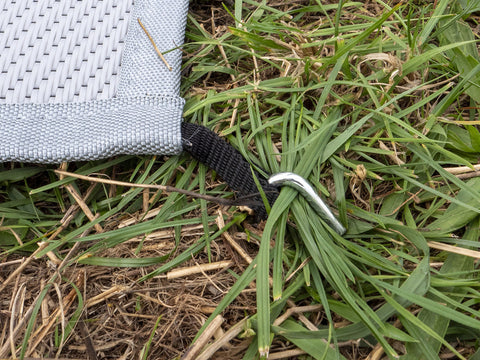 Schlaufen an allen Ecken zum Fixieren mit z.B. Heringen