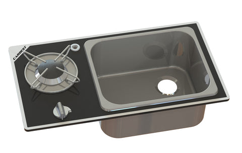 Combinaison cuisinière-évier, couvercle en verre en 2 parties - évier à gauche