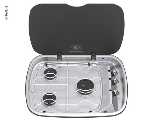 Cuisinière à gaz Topline 165 2 feux - Avec plaque de cuisson en verre et couvercle en verre à l'arrière