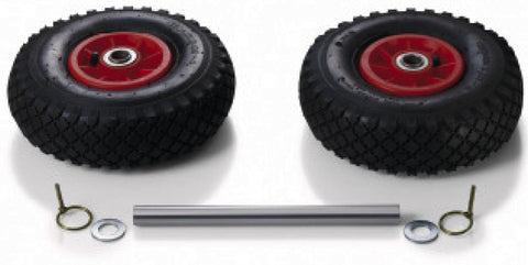 L'ensemble se compose de : 2 roues, 1 axe universel, 2 goupilles de verrouillage à dégagement rapide, petites pièces. Taille de la roue : 260 x 85 mm, poids : 2,44 kg