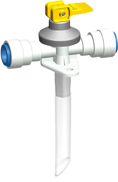 Vanne de vidange système John Guest avec raccord de diamètre 12 mm pour pose de tuyaux fixes.