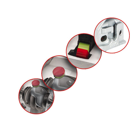 Azionando la maniglia stabilizzatrice, quattro speciali cuscinetti di attrito vengono premuti sulla sfera del rimorchio dell'auto da sinistra, da destra, da dietro e da davanti. La coppia di smorzamento delle pastiglie laterali può arrivare fino a 330 Nm. In questo modo si eliminano efficacemente fin dall'inizio eventuali movimenti del pendolo o di beccheggio. - Operazione