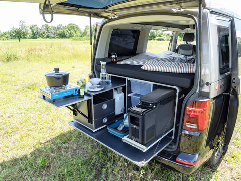 Il Campingbox L è progettato per essere installato nella parte posteriore di un furgone vuoto.