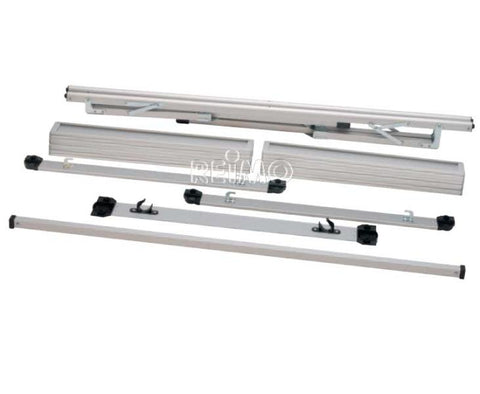 Tavolo da campeggio per 6 persone, tavolo stabile con gambe regolabili in altezza. Costruzione particolarmente stabile in alluminio. Molto pratica la rete portautensili sotto il tavolo. Il tavolo può essere riposto nella borsa per il trasporto. Superficie del tavolo: 140 x 80 cm.
