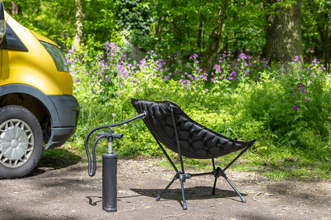La sedia pieghevole offre un elevato livello di comfort grazie alle camere d'aria gonfiabili presenti nella fodera. Il telo viene semplicemente tirato sopra il telaio eretto. Le parti interconnesse del telaio in alluminio possono essere facilmente collegate tra loro.