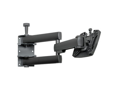 Dieser TV-Halter hat einen großen Schwenkbereich und Arretierungsbolzen. Er ist sehr leicht, hochwertig verarbeitet, bietet ein edles Design und eine große Tragekraft von bis 10 kg. Eine Schnellverschlussplatte ermöglicht ein schnelles Abnehmen des TFT. Der Halter funktioniert auch noch bei sehr hoch hängendem TFT. Der Doppelgelenkarm hat eine Aufbauhöhe von 65 mm und eine Armlänge von 350 mm. Der Auszug weist 780 mm auf.