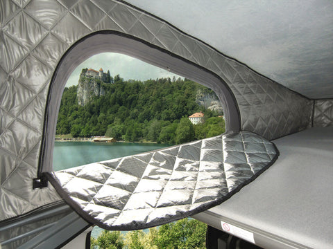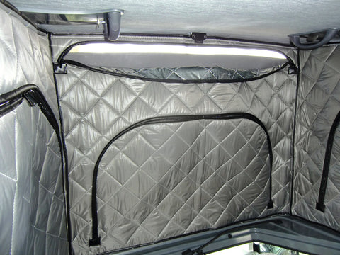 Montaggio interno: con bottoni automatici/velcro. Isolato d'estate e d'inverno. Progettato appositamente per l'isolamento del soffietto della tenda nel tetto a soffietto Reimo VW T5/6 passo corto, sollevabile nella parte anteriore.