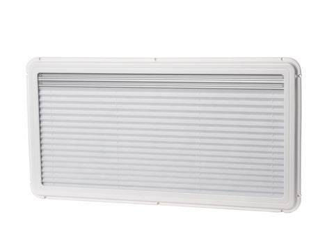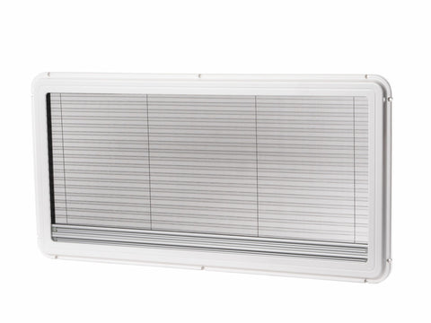 Finestrino isolato di alta qualità per furgoni, a filo con il telaio del finestrino sul lato esterno. Il sistema oscurante (tenda plissettata oscurante e anti-zanzariera con chiusura magnetica) è incluso nella fornitura.