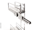 Die Schrankfront wird an den Etagen montiert und kann mit Schrauben ausgerichtet werden.