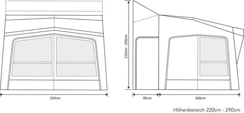 Freistehendes Reisemobilvorzelt mit Single Inflation Technologie